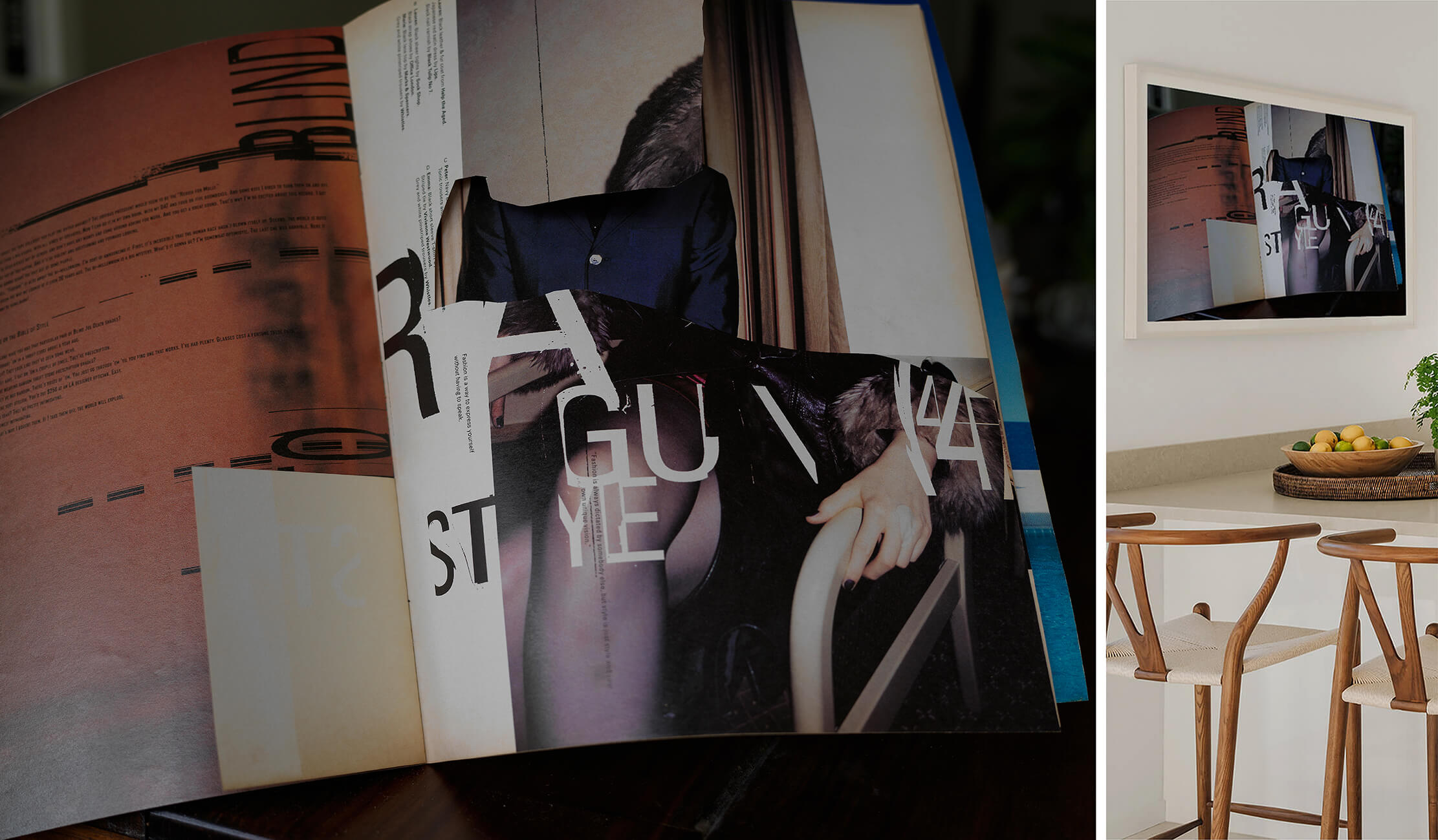 此作品以裁剪舊雜誌的手工拼貼作為創作方式。每件作品皆透過手工層疊與排列,未經任何數位修飾。